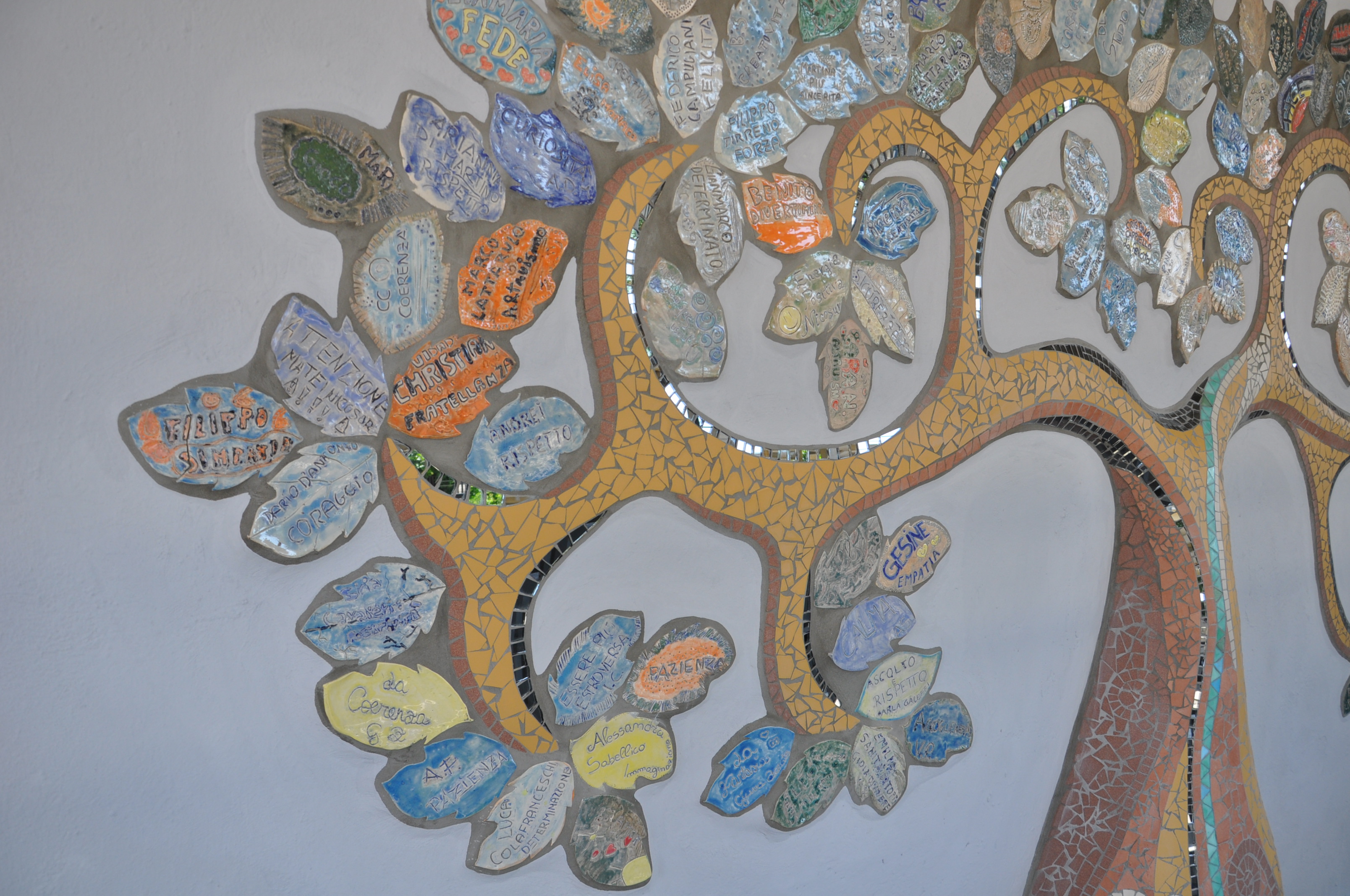 sottopassaggio pedonale. I due gruppi ceramici hanno forma di albero e sono stati realizzati da studenti di terza media della locale scuola “Giuseppe Ungaretti” in collaborazione con il maestro ceramista Giovanni Battista Rea. Ciascuna foglia riporta il nome dello studente che l’ha modellata insieme a una parola scelta dal medesimo, evocante un’idea, un concetto, una qualità ritenuta importante o esprimente la propria personalità e indole (“coraggio”, “pazienza”, “affetto” ma si
