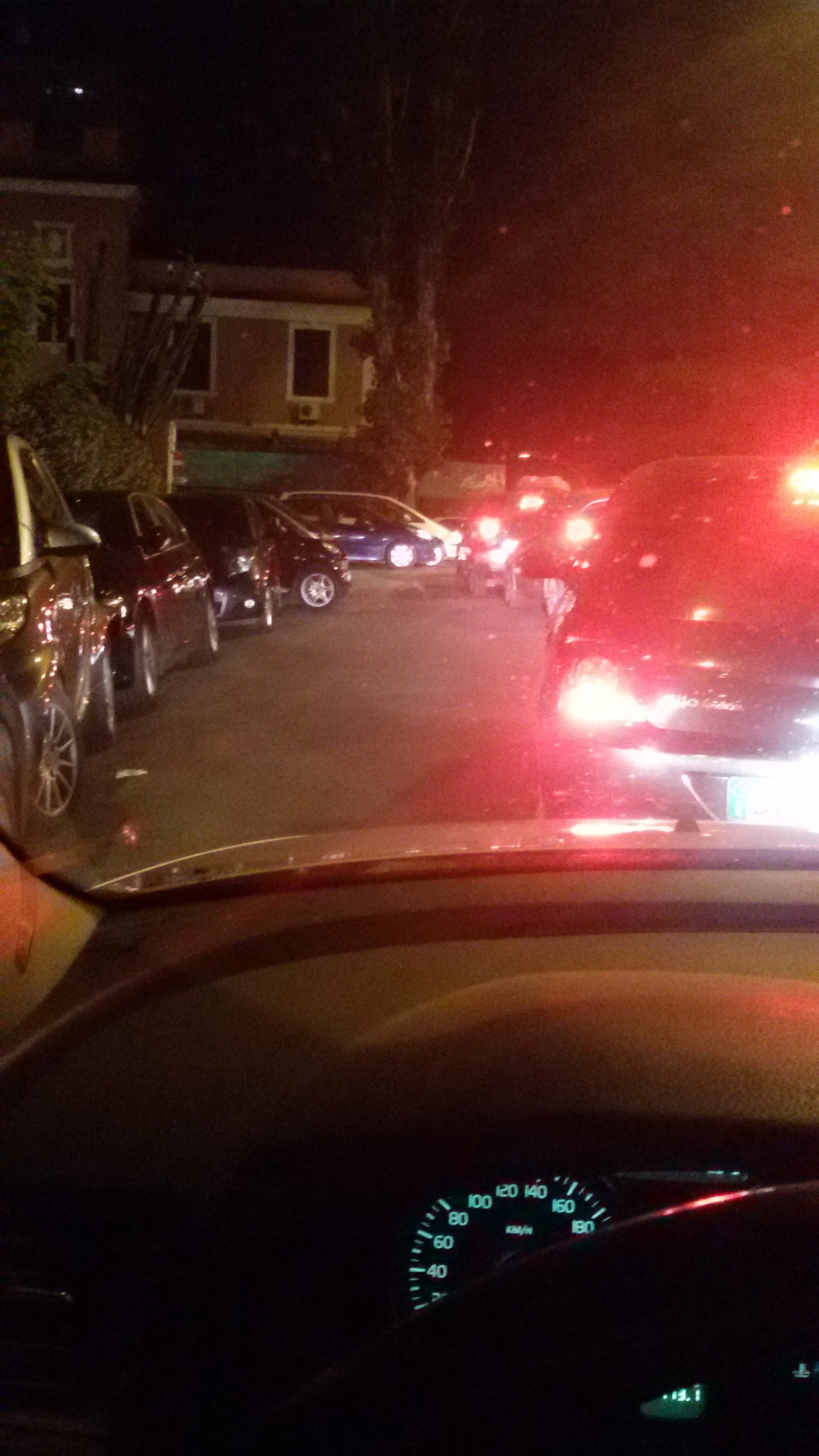 inesorabile. Guardo le cifre verdi dell’orologio sul cruscotto e vedo che sono passate due ore: ormai l’obiettivo non è più scattare le foto ma riuscire almeno a svicolare da quella autocalisse (neologismo da me coniato per indicare una apocalisse automobilistica), essendo inchiodato su via Cimone: davanti a me qualcuno la prende più sportivamente, un gruppo di ragazzi fa amicizia con delle coetanee nella vettura affianco, mi trovo a riflettere che se scocca una scintilla è probabile che anche i battesimi si tengano qui. A un certo punto mi sorprendo a esaminare con interesse dei volantini pubblicitari che avevo portato per buttarli nella differenziata, rovistando sul sedile saluto con sollievo la scoperta di quello consegnatomi giorni prima dal divulgatore di storia romana Dino Ruggiero che illustra la Casa del Ferro a Fidene e mi garantisce almeno cinque minuti di lettura. Un altro tapino si arrende e spegne il motore dichiarando urbi et orbi che si accamperà qui trascorrendovi la notte, io tengo duro guardando fiducioso non tanto al futuro quanto all’autobus rimasto in mezzo a piazza Menenio Agrippa: è l’ultimo ostacololo verso la salvezza, se ce la fa lui a liberarsi posso svoltare in direzione di Talenti e andarmene, cosa che avviene dopo un’altra decina di minuti. E l’opera lirica in quattro atti di cui parlavo prima? Iniziata quando ero uscito, termina esattamente mentre imbocco i vialetti di casa, il che può fare intuire la durata di questa piccola odissea semiseria…l’articolo sul memorial per Rino Gaetano mi sa che lo faccio l’anno prossimo.