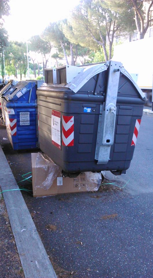 Via Painetti, zona Vigne Nuove. Il cassonetto viene svuotato automaticamente e riposizionato sulla strada. Un imballo non ridotto in pezzi si trova sul ciglio della strada in una posizione che nemmeno al più fantasioso degli sceneggiatori sarebbe venuta in mente di scrivere. L’operatore comanda al braccio meccanico di depositare il grande contenitore nuovamente in terra. Non si rende conto che quello non è atterrato sull’asfalto ma su uno scatolone. Qualcuno fotografa il proprio stupore. Dopo poco, il cassone, prepotentemente riguadagna il suolo.