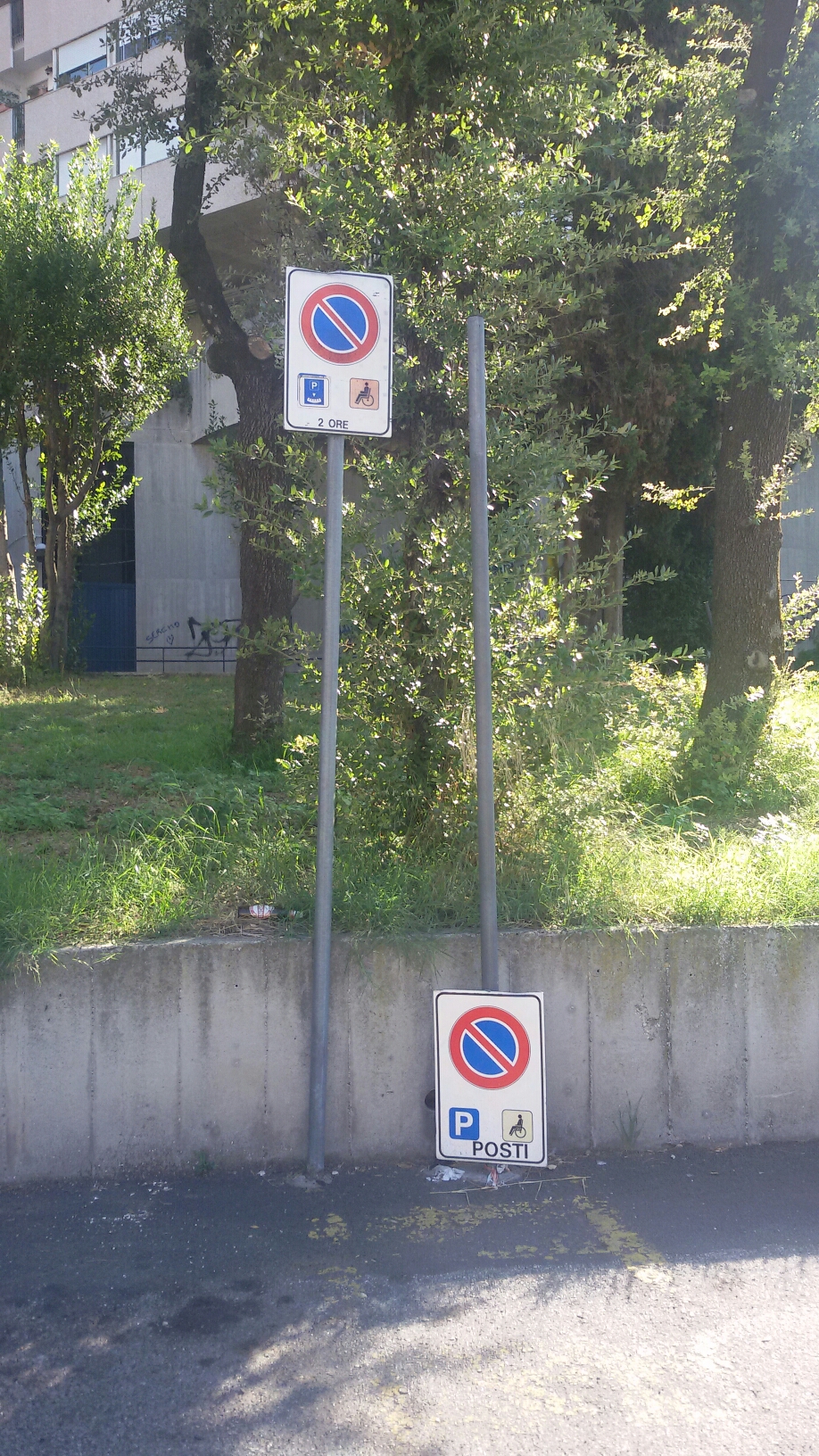 Bene, queste sono le condizioni – segnalate anche dalla stampa locale – in cui da oltre un anno si trova il parcheggio a loro riservato: il segnale appoggiato a terra, le strisce gialle pressochè invisibili. Ci vuole molto a sistemarlo?
