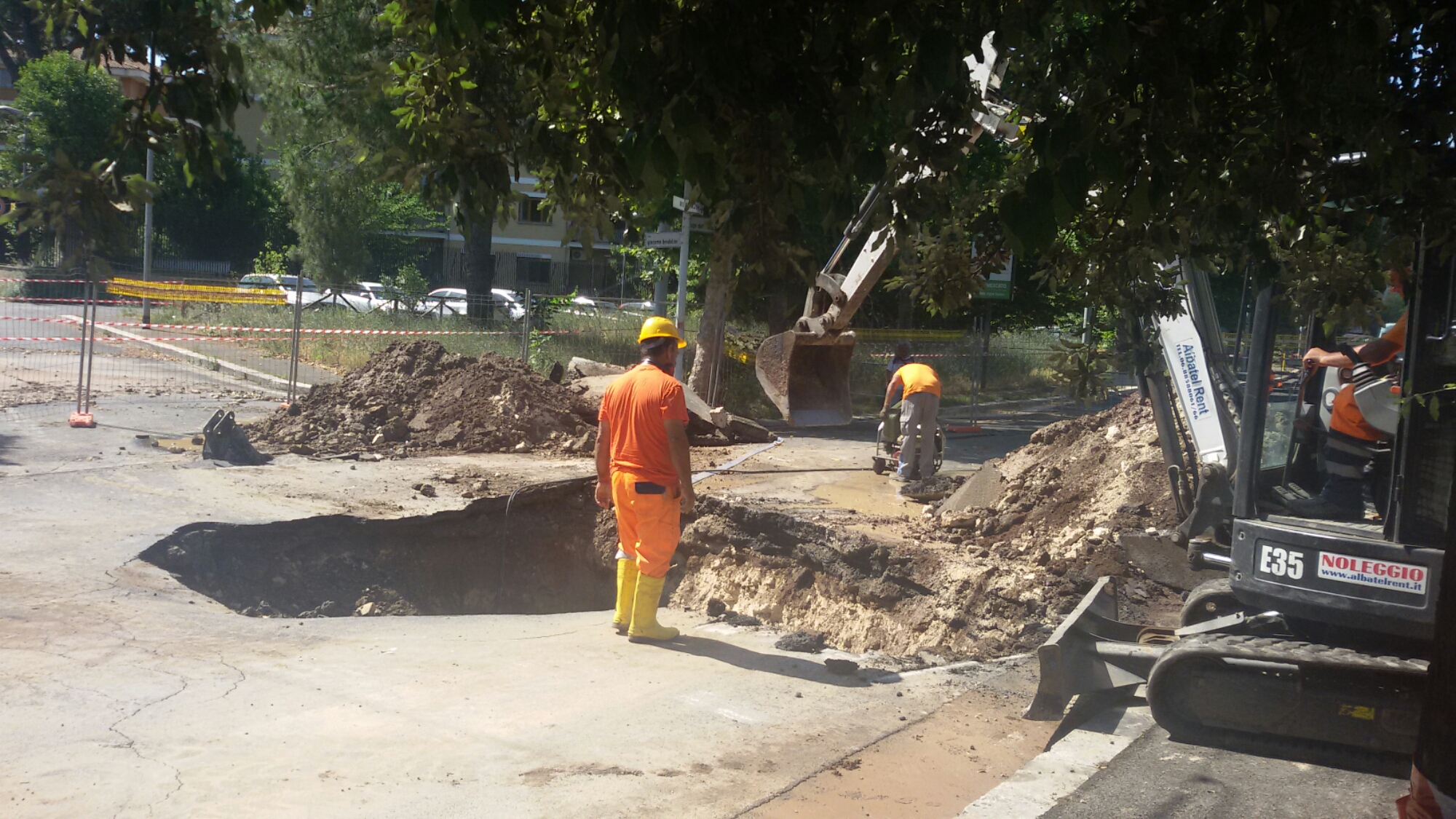La voragine sulla quale si sta operando ha causato deviazioni del traffico.