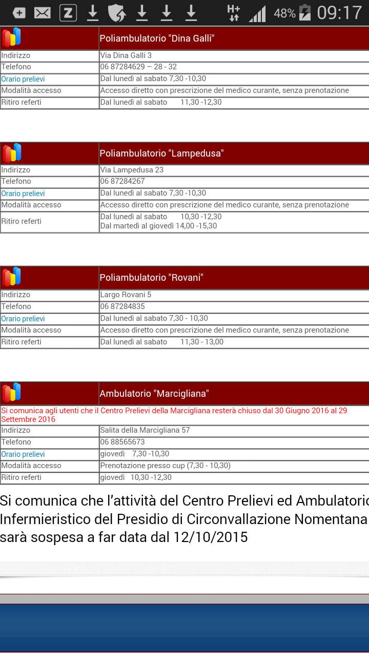 1 LugDa quanto si legge su un avviso affisso all’esterno della struttura, il poliambulatorio sito in salita della Marcigliana 57 (quartiere Settebagni, Terzo Municipio della Capitale) rimarrà chiuso fino al 15 settembre 2016. Sul