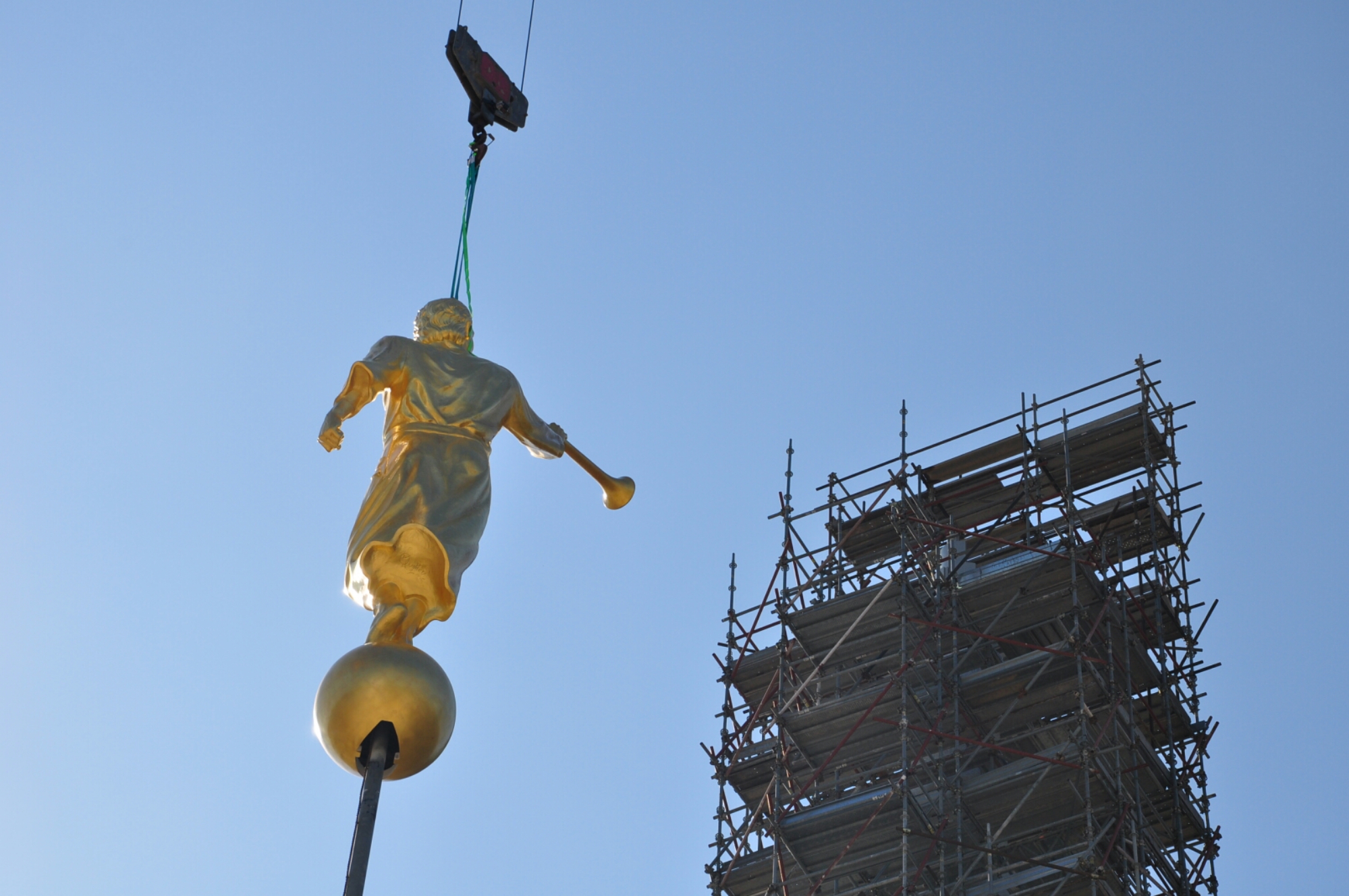 comunemente nota come “Mormone” – la cui costruzione, iniziata nel 2010, si avvia al completamento. Una importante tappa dei lavori è stata toccata la mattina dello scorso 25 marzo con la deposizione su una delle guglie della statua raffigurante l’ “Angelo Moroni”, antico profeta presente nel Libro di Mormon (il testo di Scritture cui i membri della Chiesa Mormone fanno riferimento assieme