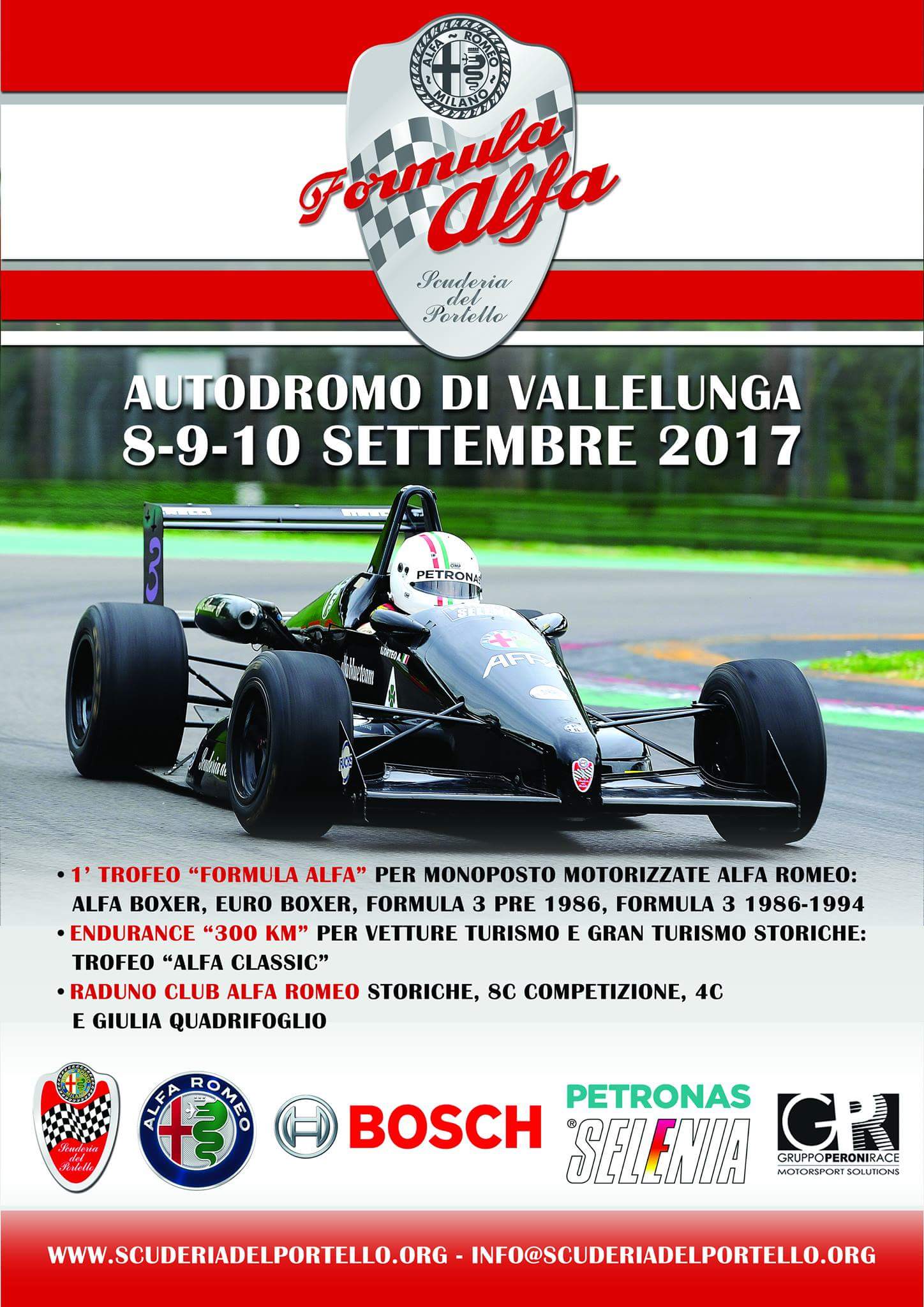 8 SetÈ in programma all’autodromo di Vallelunga (nei pressi di Roma) il 9 e 10 settembre 2017 un appuntamento che susciterà l’entusiasmo degli appassionati delle belle auto sportive di una volta: “Formula Alfa”, manifestazione ufficiale Alfa Romeo Heritage, che porterà in pista per tutti e due i giorni le vetture storiche della Casa del biscione. Prevista la presenza del celebre pilota Alessandro Nannini e di Davide Cironi, l’esperto di motori ormai noto agli Youtubers. L’iniziativa è organizzata dalla Scuderia del Portello con il supporto del Club Cuore Sportivo Lazio.