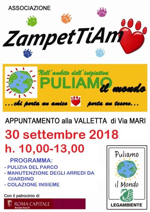 [Roma] Domenica 30 settembre torna l’appuntamento con le pulizie straordinarie dell’area verde nota come “valletta di via Mari”, zona Ateneo Salesiano, Terzo Municipio della Capitale. L’intervento è organizzato dalla associazione Zampettiamo nell’ambito dell’iniziativa “Puliamo il mondo” di Legambiente e ha il patrocinio del Comune di Roma. L’inizio delle attività è previsto per le dieci di mattina e si andrà avanti fino alle tredici.