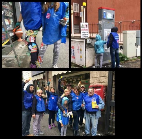 [Roma] La piaga degli adesivi pubblicitari – di solito riguardanti la riparazione di serrande o facchinaggio e sgombero di mobilia – è un fenomeno non esclusivamente romano, anche se nelle strade della Capitale assume particolare virulenza: gli sticker tappezzano superfici di ogni genere, dai muri alle cassette postali ai lampioni agli armadietti elettrici senza dimenticare i secchioni della spazzatura. Qualcuno però è stanco di vedere la città sepolta da strati di adesivi ed è per questo che un gruppo di volontari facenti capo alla associazione Retake Roma Terzo Municipio, la mattina del 24 novembre si è dato appuntamento in via Franco Sacchetti – zona Talenti Bufalotta – per dare una ripulita alla zona restituendole un minimo di decoro sottraendola all’adesivo selvaggio. In molti si sono fermati per esprimere apprezzamento ai Retaker anche se non è mancato chi ha manifestato un certo fastidio, segno che c’è ancora chi per malignità o interesse rema contro il cambiamento virtuoso.