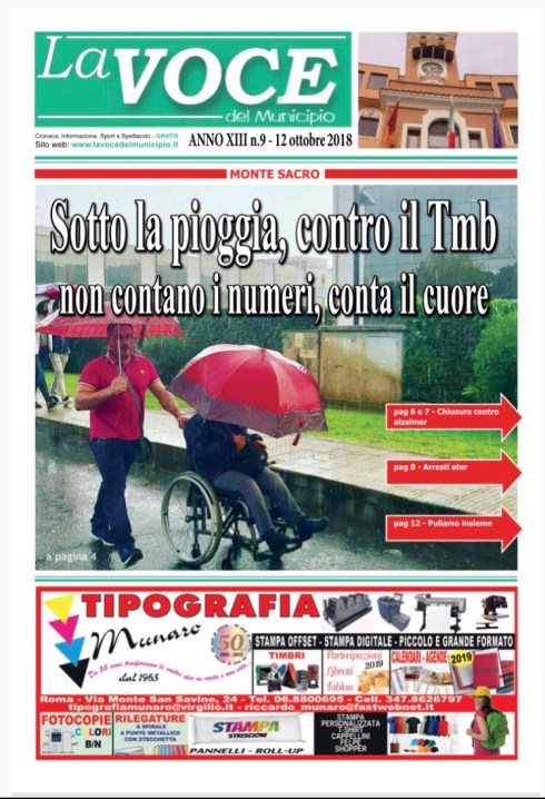 (Foto di repertorio: numero di ottobre 2018 de La voce del Municipio, prima pagina sulla grande mobilitazione di piazza contro le attività del Tmb salaria)