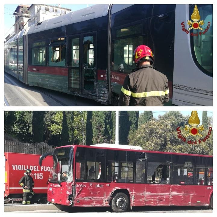[ROMA] Incidente stradale nel pomeriggio del 2 luglio tra un autobus e un tram in via Labicana, nelle adiacenze del Colosseo. Tra le cause ipotizzate del sinistro, in cui è rimasto ferito l’autista del bus ed è stata coinvolta una vettura privata, anche il deragliamento del tram. Sul posto sono intervenute tre squadre dei Vigili del Fuoco con il Carro Sollevamenti e Autogru. Alessandro Pino