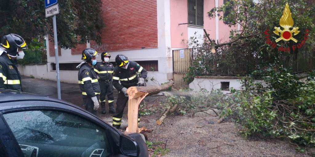caduta di alberi e rami causati dalla pioggia e dal vento forte.