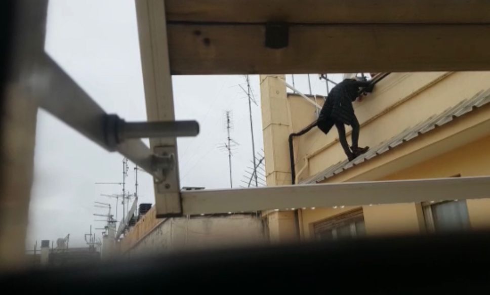 Gli agenti sono giunti sul posto assieme ai Vigili del Fuoco provvisti di carro teli, trovando la donna, romana trentaduenne, in bilico sul tubo di una grondaia scoscesa.