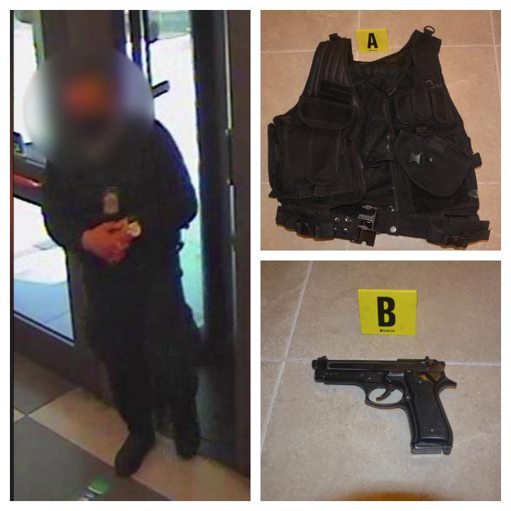 Sempre lo stesso il modus operandi: l’uomo entrava nelle banche vestito con tuta operativa, giubbotto multitasche, tesserino e placca finti e pistola in pugno (una scacciacani riproducente una Beretta senza il tappo rosso) si faceva consegnare il denaro contante custodito in quel momento, per un totale di circa 10.000 euro.