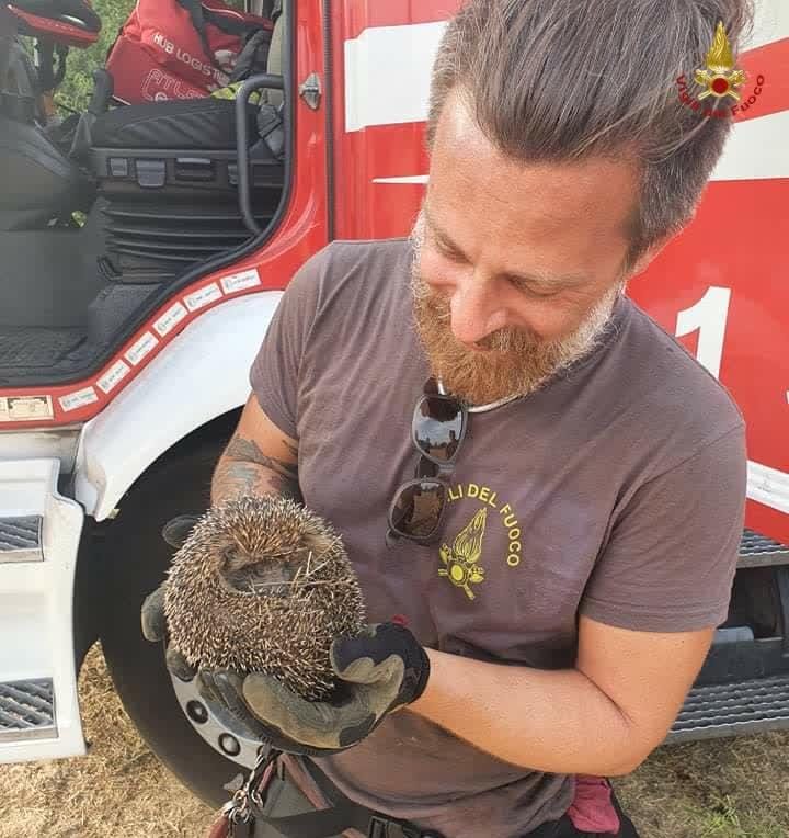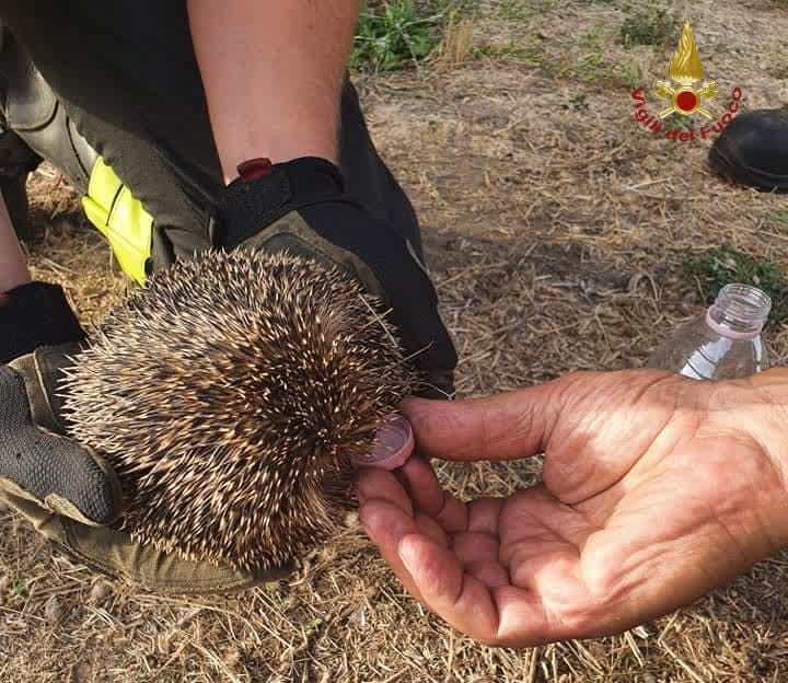 [ROMA] Durante le operazioni di spegnimento dell’incendio di sterpaglie divampato nel pomeriggio del 4 agosto in zona Due Leoni-Fontana Candida, i Vigili del Fuoco hanno salvato una famigliola di ricci trovata in un canneto che bruciava.