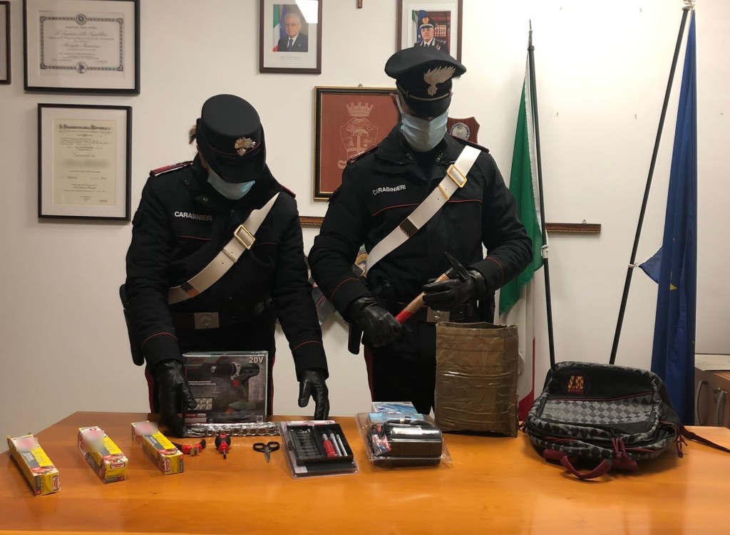 É stata ispezionata anche la loro auto parcheggiata nei pressi: dentro c’era uno zaino contenente un trapano, un set di lame in acciaio, un cacciavite, un martello, una tronchese, un paio di forbici, un set di bussole per chiavi a cricco, un mini compressore, tre rotoli di alluminio, due rotoli di scotch da pacchi, un pacco di guanti e una borsa schermata con alluminio e scotch, tutto materiale utilizzabile per perpetrare reati predatori.