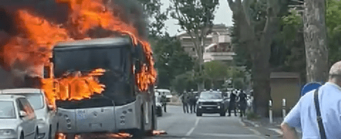 [ROMA] Ennesimo autobus andato a fuoco sulle strade della Capitale: stavolta è toccato a una vettura della linea 039 che é stata divorata dalle fiamme sulla via Salaria nel tratto che passa dentro il quartiere di Settebagni la mattina del 27 maggio.