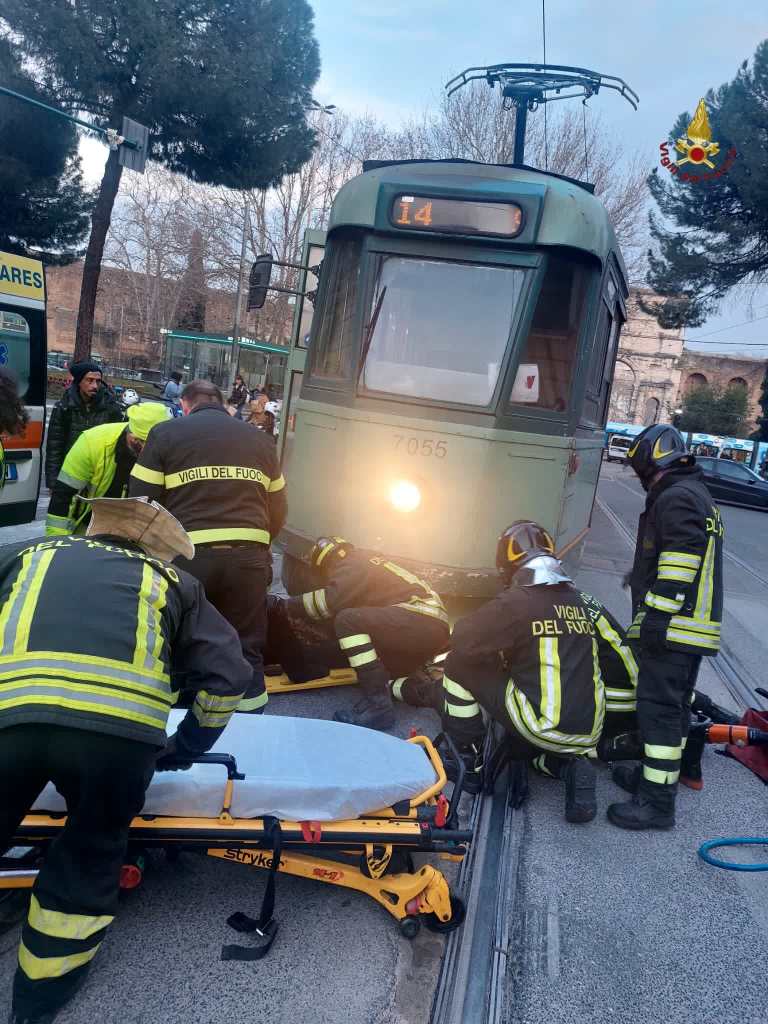 [ROMA] Una donna in bicicletta è andata a incastrarsi sotto un tram della linea 14 8n piazza di Porta Maggiore nel pomeriggio del 16 febbraio. La donna è stata soccorsa dai Vigili del Fuoco che l’hanno estratta da sotto la vettura della serie Stanga 7000 affidandola poi ai sanitari per il trasporto al pronto soccorso. La ciclista non è in pericolo di vita. A cura di Alessandro Pino (Foto Comando Provinciale Vigili del Fuoco Roma)