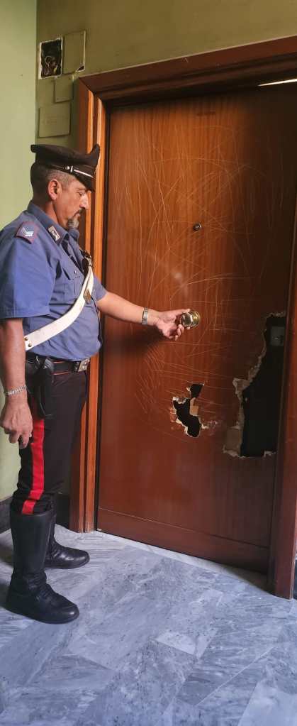 Ieri pomeriggio, l’uomo si è presentato presso a casa della madre in via Matteo Tondi. L’anziana in quel momento non era in casa e così dopo aver citofonato più volte e bussato alla porta senza ricevere risposta, ha iniziato a colpirla con un martello, danneggiandola.