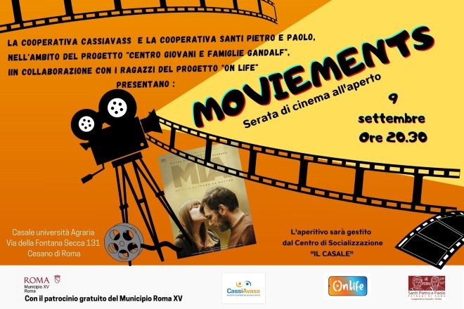 [ROMA] Il 9 settembre presso il Casale dell’Università Agraria di Cesano in via della Fontana Secca 131 si svolgera la seconda edizione di “Moviements”, serata di cinema all’aperto con ingresso gratuito.