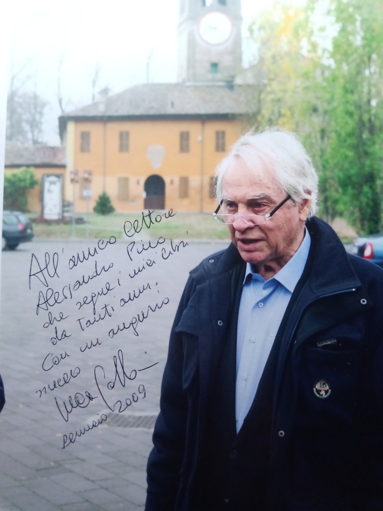 I lettori perdoneranno a chi scrive un ricordo personale: il primo libro che lessi per intero fu il suo “Dipende…” e mi chiedevo sempre perché a scuola non ci assegnassero i libri di Luca Goldoni, frizzanti e coinvolgenti anziché certe mattonate neorealistico-resistenziali a dir poco soporifere. A quella lettura ne seguirono parecchie altre (in libreria avrò almeno una dozzina di suoi volumi); chissà come mai, una quindicina di anni or sono dopo una ricerca in rete individuali il suo indirizzo a Bologna -escluso il numero civico, ma contavo sul fatto che nel caso di persone note i postini sanno dove recarsi- e gli scrissi chiedendogli la cortesia di una sua foto con dedica, proprio quella che illustra questo articolo di commiato.