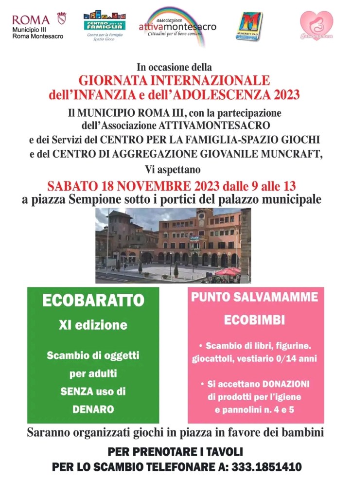 [ROMA] Il Terzo Municipio Monte Sacro aderisce alla Giornata Internazionale per i diritti dell’infanzia e dell’adolescenza che quest’anno cade 𝐬𝐚𝐛𝐚𝐭𝐨 𝟏𝟖 𝐧𝐨𝐯𝐞𝐦𝐛𝐫𝐞.