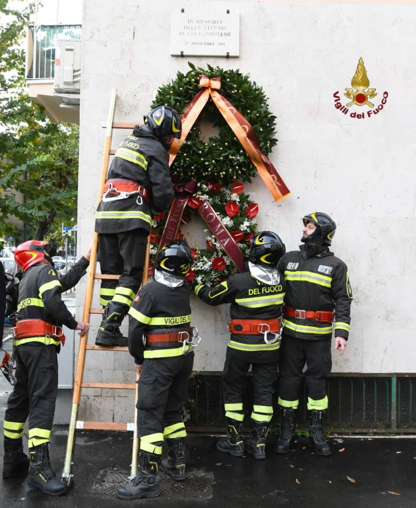 La mattina del 27 novembre 2023 il Comando Provinciale dei Vigili del Fuoco di Roma e il Comune di Roma hanno commemorato le vittime con la deposizione di due corone floreali in prossimità della targa commemorativa a via Ventotene e una corona d’alloro presso il monumento commemorativo nello slargo di via Scarpanto, simbolo dei Vigili del Fuoco caduti in quella apocalittica mattinata. A cura di Alessandro Pino(foto Comando Provinciale Vigili del Fuoco Roma)