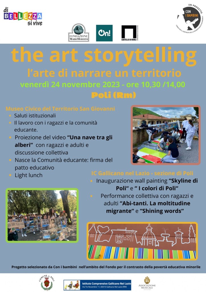 [POLI-RM] Il 24 novembre 2023 presso il Museo Civico del Territorio si terrà la giornata conclusiva della manifestazione Art Storytelling, l’Arte di NarrareunTerritorio nell’ambito del più ampio progetto educativo nazionale DiBellezza Si Vive sostenuto da Con i Bambini nell’ambito del Fondo per il contrasto della povertà educativa minorile.
