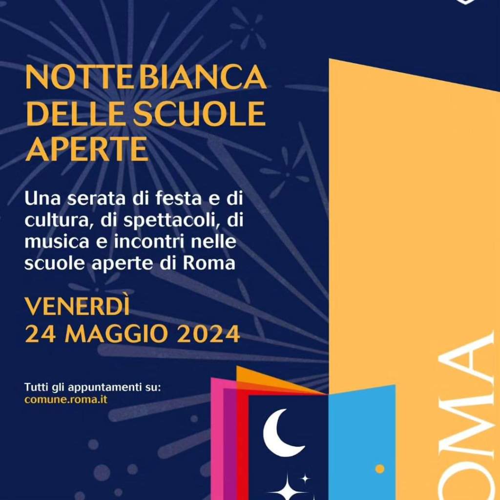 [ROMA] Venerdì 24 maggio 2024 torna la NOTTE BIANCA DELLE SCUOLE APERTE, la seconda edizione della festa delle scuole vincitrici del bando di Roma Capitale che consente l’apertura degli Istituti oltre l’orario ordinario, quindi i pomeriggi, la sera e nei weekend, con attività artistiche e di supporto scolastico finalizzate al contrasto alla povertà educativa e per la sostenibilità ambientale.