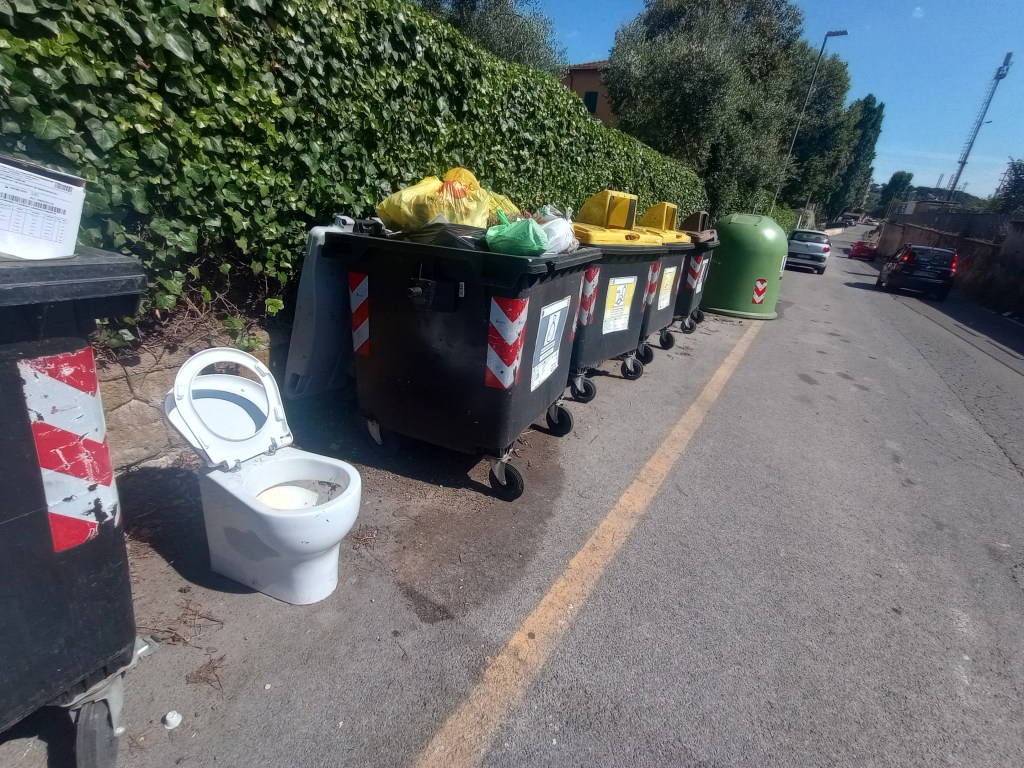 [ROMA] Qualche giorno fa, tra i cassonetti della spazzatura vicino l’ingresso della stazione in via dello Scalo di Settebagni- nell’omonimo quartiere del Terzo Municipio – qualche persona civile ha adagiato una tazza del water, completa di tavoletta, proveniente con tutta evidenza da qualche ristrutturazione.