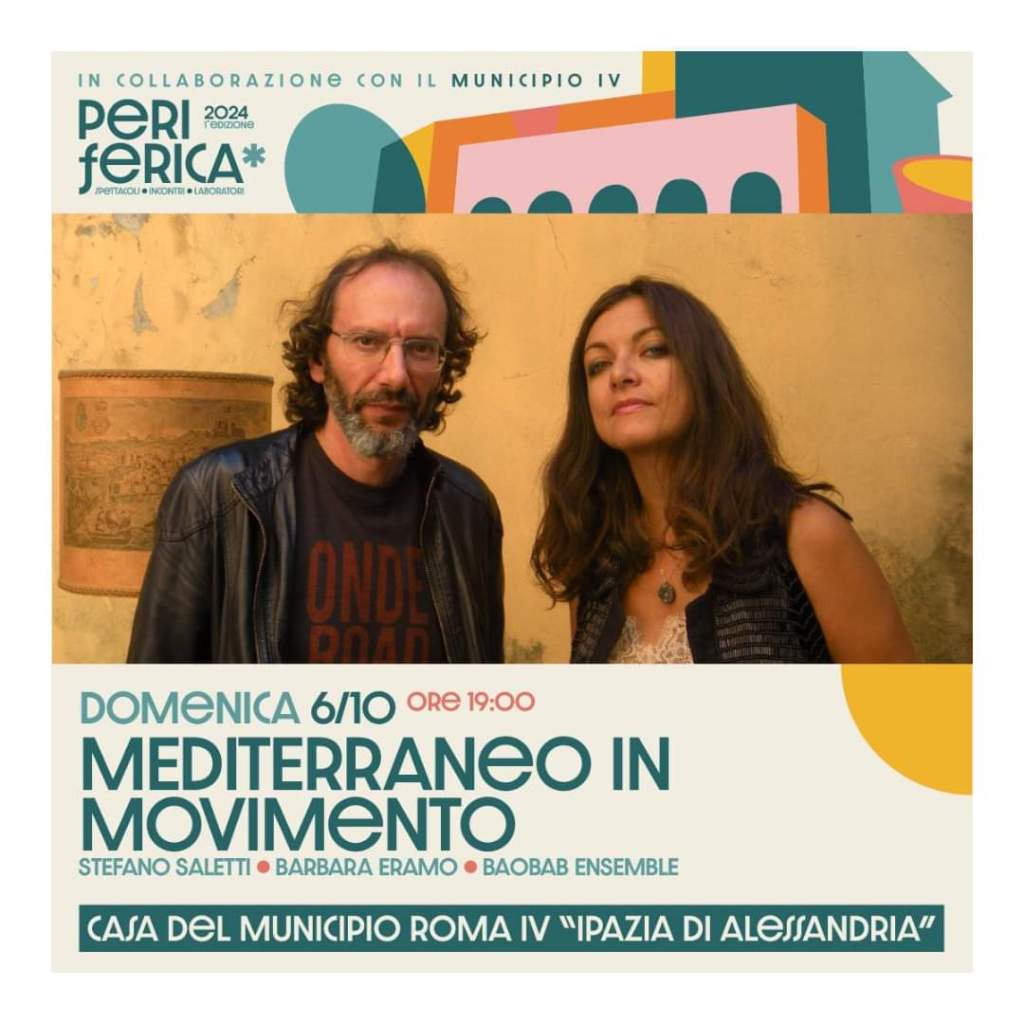 [ROMA] Domenica 6 ottobre 2024 la Casa del Quarto Municipio “Ipazia di Alessandria” (già Villa Farinacci) a Casal de’Pazzi, nell’ambito della manifestazione “Periferica” ospita il polistrumentista Stefano Saletti, la cantante Barbara Eramo e Baobab Ensemble in concerto con “Mediterraneo in Movimento”.