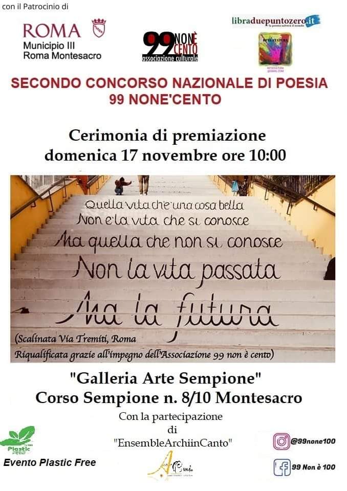 [ROMA] Domenica 17 novembre 2024 la Galleria d’Arte di Corso Sempione, 8 ospiterà la Premiazione del Secondo Concorso Nazionale di Poesia 99 NONÉCENTO.