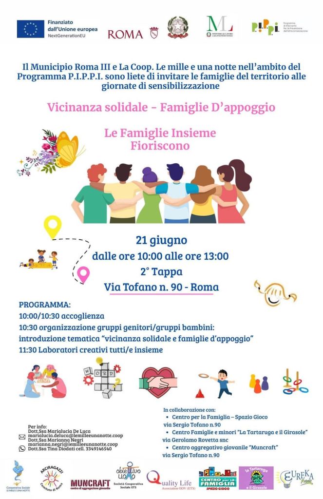 [ROMA] Sabato 21 giugno 2025 si svolgerà dalle 10 alle 13 nella palestra del Centro Famiglie di via Sergio Tofano 90 (zona Vigne Nuove) il secondo evento di sensibilizzazione rivolto alle famiglie del territorio, dedicato ai temi della Vicinanza Solidale e delle Famiglie d’Appoggio.
