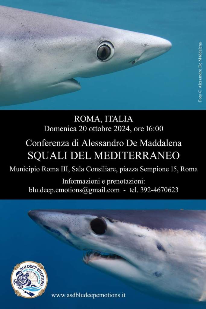 [ROMA] Arrivano gli squali nell’aula consiliare del Terzo Municipio a piazza Sempione: domenica 20 ottobre 2024 alle 16 si terrà la conferenza Squali del Mediterraneo del dottor Alessandro De Maddalena, Great White Shark Specialist.
