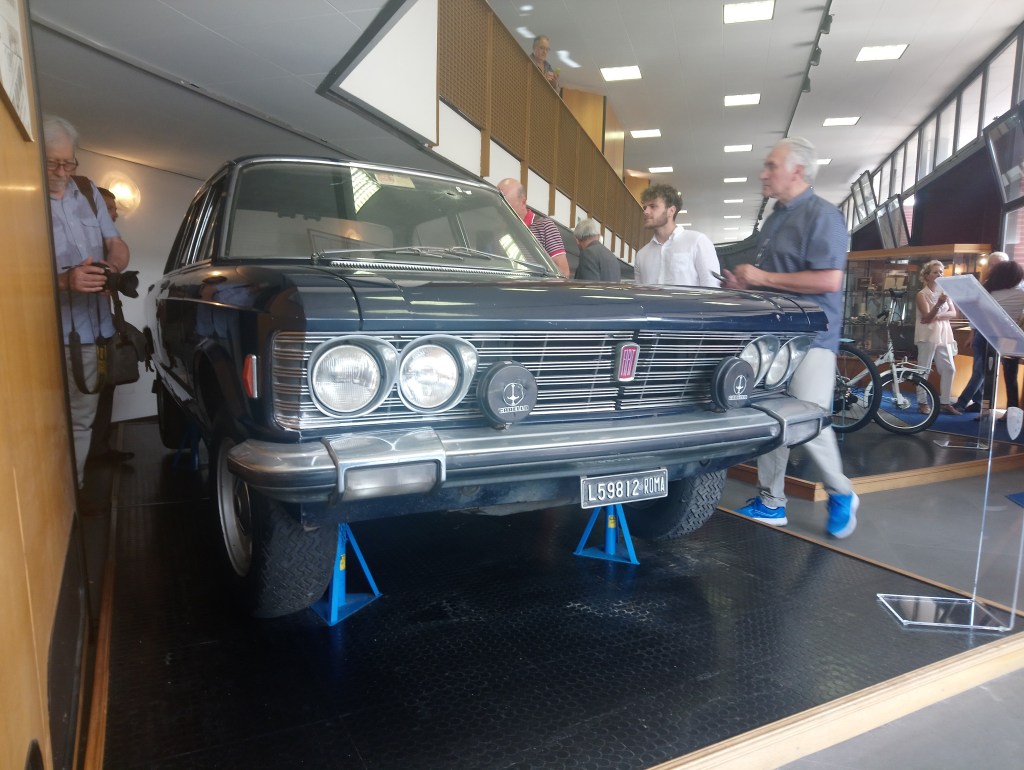 conservata come le immagini dei telegiornali la resero tristemente nota – fori di proiettili sul parabrezza inclusi – c’è la Fiat 130 blu ministeriale della strage di via Fani sulla quale viaggiava Aldo Moro con il caposcorta maresciallo Oreste Leonardi e l’autista, appuntato Domenico Ricci quella mattina di marzo del 1978 quando il leader democristiano fu rapito dai brigatisti rossi e gli uomini della scorta trucidati. In occasione della riapertura, è stata portata nel piazzale antistante il Museo un’altra vettura legata ad Aldo Moro e recentemente ritrovata: la sobria Peugeot 403 giardinetta blu carta da zucchero targata Bari appartenuta alla famiglia dello statista pugliese, a bordo della quale fu ritratto con la moglie Eleonora alla guida. Un rinfresco all’aperto cui si è unito anche l’architetto Valerio Moretti – ultimo superstite tra i soci fondatori dell’Asi e autorevole firma della lettratura di settore – ha concluso la mattinata: prima di andare via un ultimo sguardo al salone espositivo dal quale il pubblico è uscito, sperando che presto torni ad affollarsi.