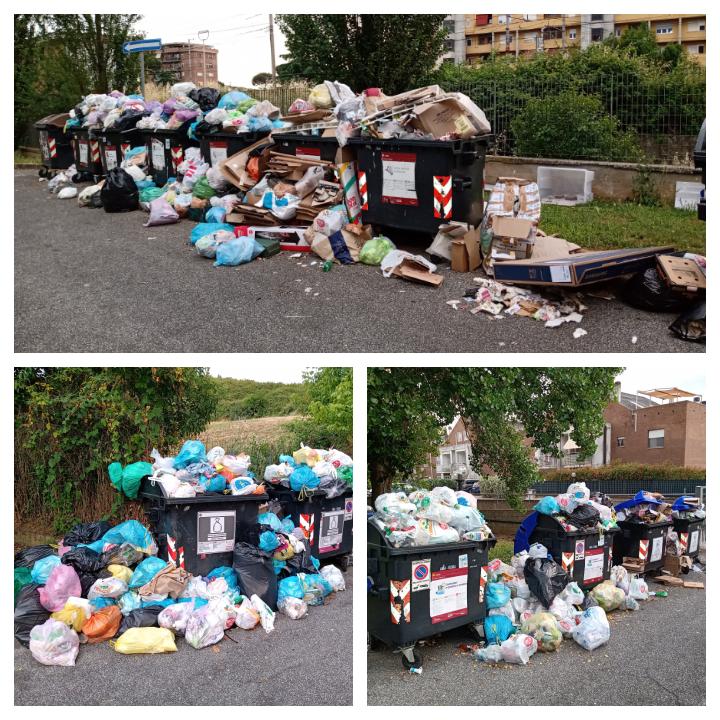 [ROMA] Le immagini che vedete sono state scattate nella prima serata del 7 giugno a Settebagni, in via Sant’Antonio di Padova: cassonetti che non vengono svuotati da giorni e la spazzatura che si accumula accanto. Nel resto del quartiere come in altre zone del Terzo Municipio e della Capitale il quadro che viene segnalato, non esattamente da Intervallo della Rai con ameni paesaggi e armenti al pascolo, è più o meno lo stesso. I cittadin* finiranno sepolti dalla mondezza o soffocati dai suoi miasmi?