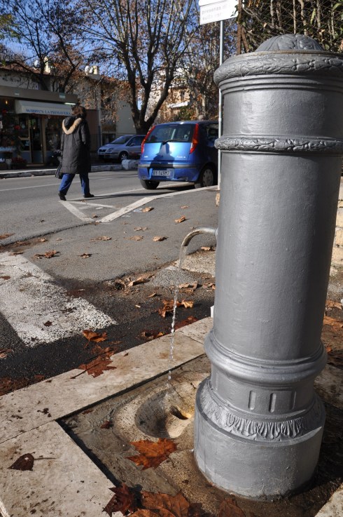 Ormai era da più di un anno che la fontanella pubblica presente nella piazzetta formata dagli edifici che ospitano il bar Glicine e la pizzeria Aldino, la profumeria, l’alimentari Massimiani, il forno e la delegazione Aci era stata portata via dai tecnici dell’Acea perché difficilmente riparabile senza un intervento radicale, lasciando al suo posto una buca transennata alla male e peggio.