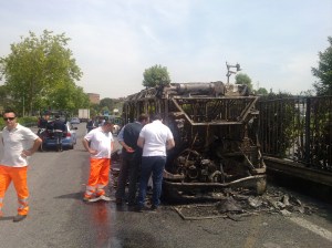Il flusso di veicoli è stato reincanalato dagli operanti in direzione fuori Roma al semaforo nei pressi della Api e del concessionario Porsche.