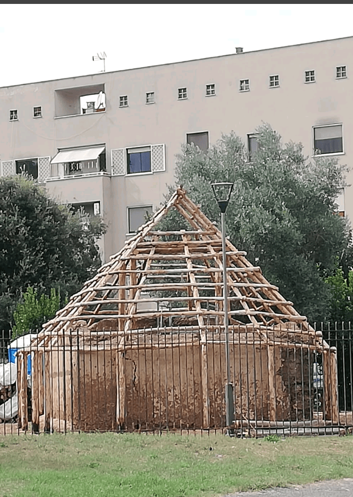 [ROMA] Proseguono i lavori di restauro della ricostruzione della Capanna Protostorica di via Quarrata a Fidene: nei giorni scorsi è stata completata l’intelaiatura di pali che sorregge il tetto.