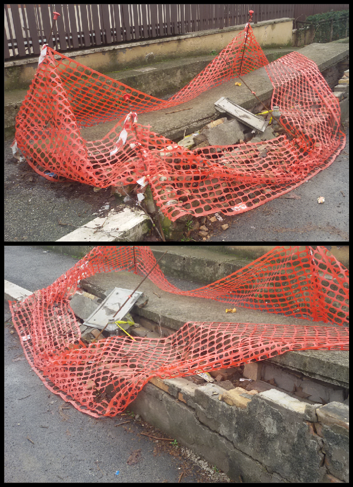 Da diversi mesi a Settebagni sul marciapiede vicino la farmacia c’ è questo triste spettacolo: i resti di un elemento in muratura e calcestruzzo che stava a protezione di una tubatura probabilmente idrica, provvista di valvola di sfogo e che è andato distrutto, pare in seguito all’ urto di un mezzo pesante. Il locale Comitato di Quartiere già a settembre dello scorso anno aveva ufficialmente chiesto alle autorità competenti la messa in sicurezza e il ripristino della costruzione. Al momento di pubblicare questo articolo (8 febbraio) la situazione è però quella in foto: un cumulo di rovine con la rete di plastica arancione che le delimitava caduta assieme ai suoi sostegni. Alessandro Pino