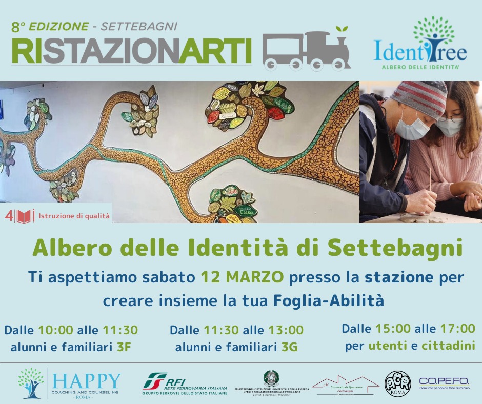 Giunta all’ottava edizione, vede la partecipazione del plesso Ungaretti, della scuola Uruguay, del Comitato di Quartiere Settebagni e della Parrocchia assieme alla APS HAPPY Coaching and Counseling Roma, tutti uniti per continuare l’opera d’arte partecipata “Albero delle Identità” nella stazione ferroviaria, creando cultura e coesione sociale.