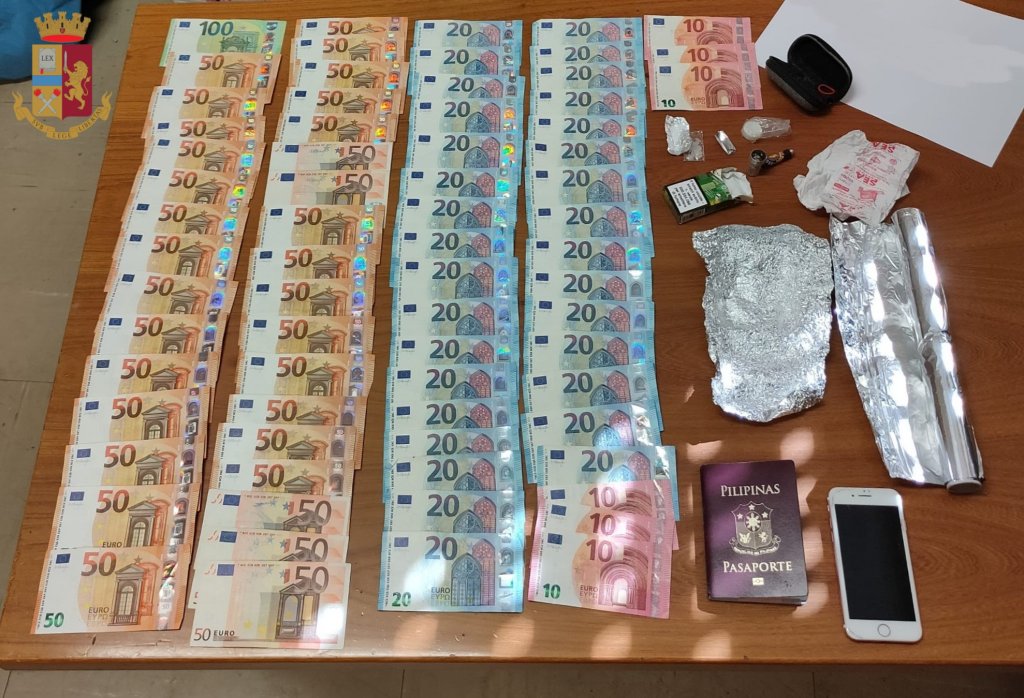 Nascoste sul fondo di un cassetto del banco di vendita c’erano 61 banconote da 50 euro, mentre nella stampante al posto del toner c’era un astuccio con diciotto banconote da 20 euro, venti banconote da 10 euro e sette banconote da 5 euro. La successiva perquisizione domiciliare ha portato al sequestro di oltre due etti e mezzo di hashish divisi in cinque involucri, un bilancino di precisione, un coltello per il taglio e numerose bustine in plastica per il confezionamento.