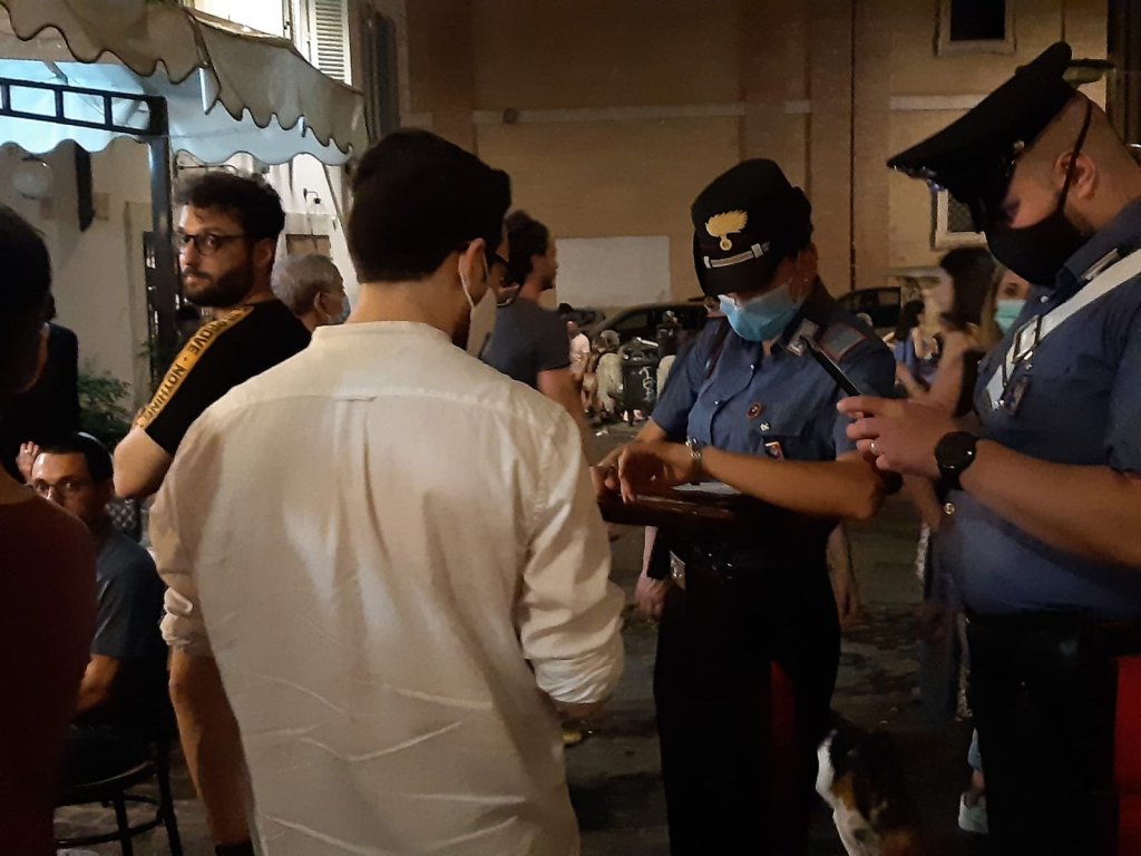 Poco prima della mezzanotte invece, i militari della Stazione Piazza Farnese sono intervenuti in un Bed & Breakfast di via dei Pettinari durante la festa di compleanno di romano che compiva ventun anni. Il giovane non è riuscito a spegnere le candeline poiché i militari lo hanno identificato e sanzionato insieme ai suoi otto invitati.