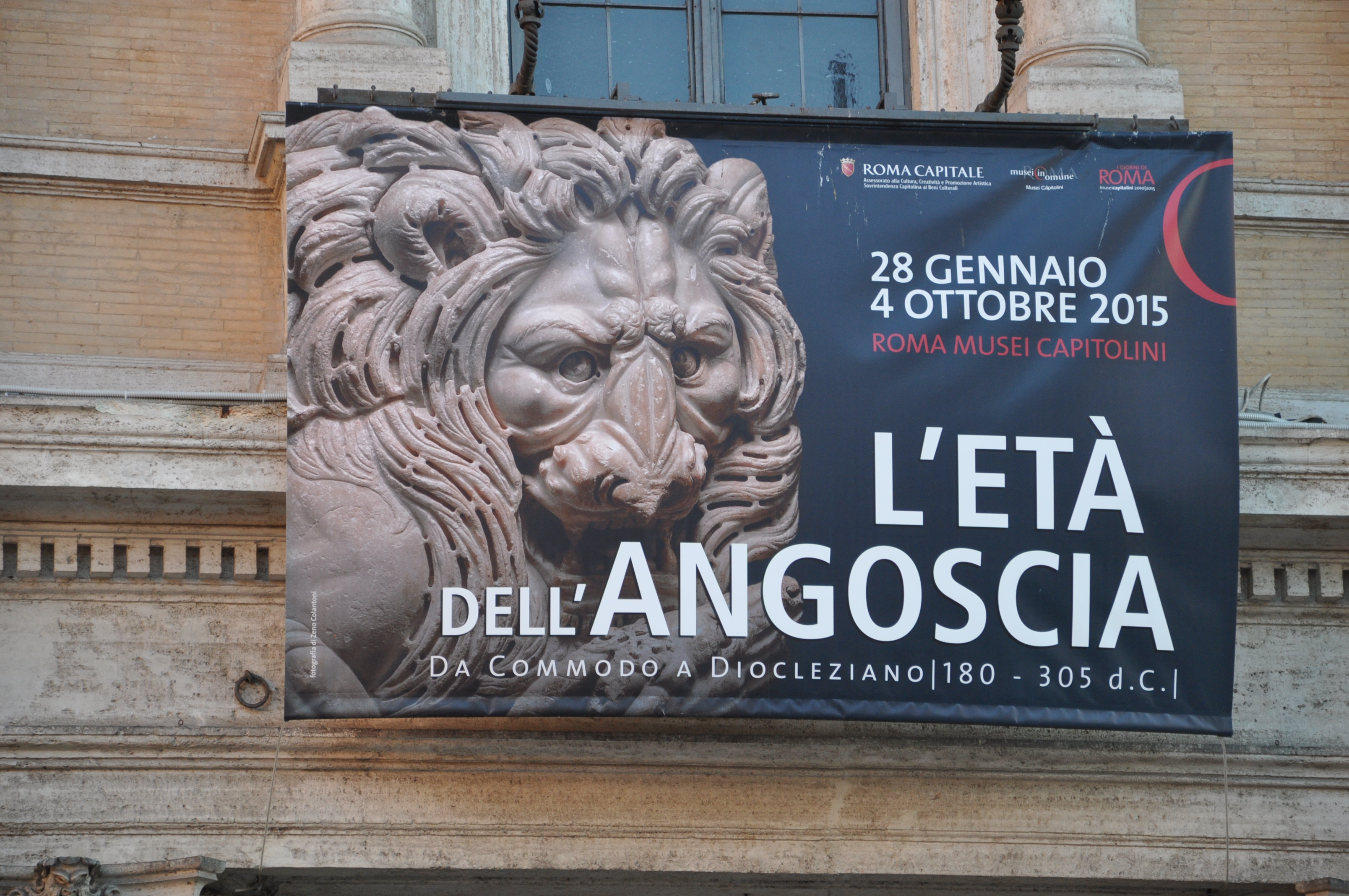 Lo dico a Pino, mi guarda come se gli avessi segnalato Marino vestito da antico romano, poi si convince ad andare a guardare e alla fine scatta raffiche di foto come solo un turista giapponese. Ci guardiamo perplessi, osserviamo la copia del Marc’Aurelio che sembra indicare il drappo della mostra: raffigura un enorme leone di marmo con le fauci aperte. Titolo: l’età dell’angoscia. Già questa bastava a stendere un armadio ma noi non ci scomponiamo. Sapevamo che fare la diretta da qua avrebbe comportato l’eroica missione di fermare un taxi a Roma in un giorno di sciopero o farsela a piedi per qualche chilometro o anche, sfidare la sorte aspettando qualche bus superstite. Stamattina ho lasciato la macchina in via Damiata, a Prati. Ma cosa vuoi che sia mai una passeggiata lungo il Tevere, in centro, all’imbrunire in una sera d’estate rinfrescata dal venticello romano… evitiamo i bar per turisti ma non schiviamo le strisce pedonali sbiadite, perfino sotto l’altare della Patria. Roma vista girando a piedi , senza fretta, indigeni tra i turisti. Quasi un esperimento sociologico. Cominci a distinguere la diversità di sguardo del barista a seconda se ti giudica romano o visitatore, l’impercettibile cambio nei gesti e nel tono delle parole. Già all’altezza di Largo di Torre Argentina la premiata ditta ha perso la voglia di scherzare, le buche e la segnaletica scolorita, unita ad una certa sporcizia generale dei marciapiedi riescono a creare un’atmosfera sinistra, che per nulla si addice a quella che un tempo era stata la caput mundi. Percepisco un qualcosa, un lieve fastidio a cui non so dare un nome preciso ma decido di ignorarlo, sfiorata dalle centinaia di turisti che imperterriti camminano intorno a noi.