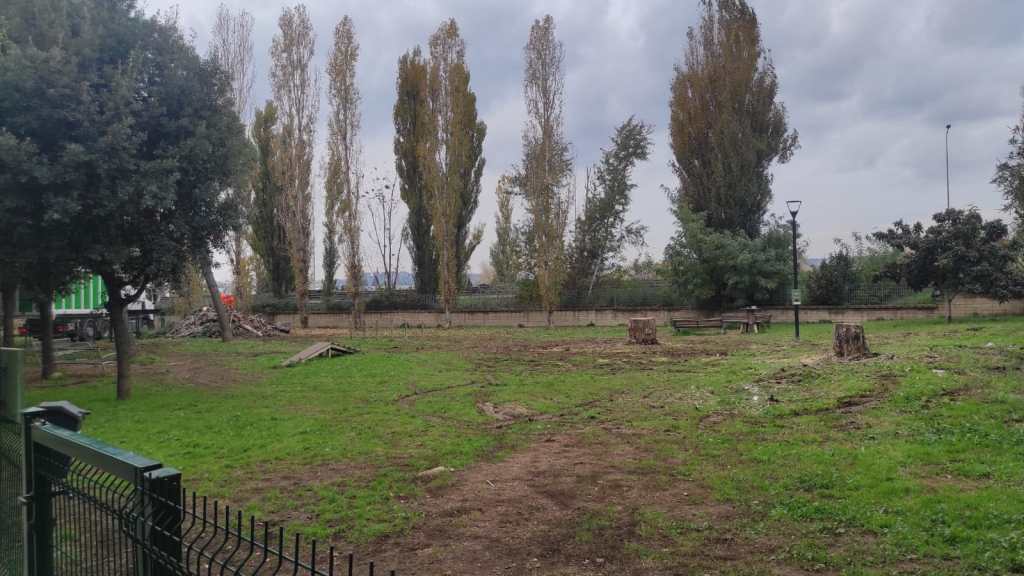 Finalmente la parte finale del parco e l’area cani, dove era presente un grosso albero dal tronco corroso alla base, tornano ad essere fruibili.