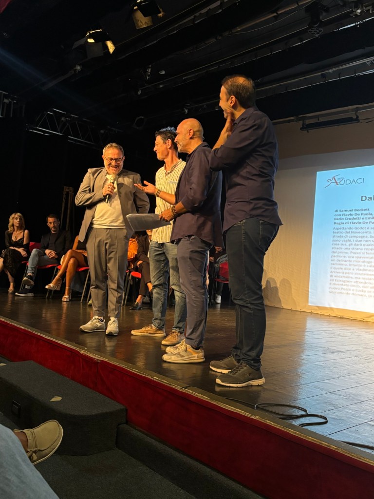 Nonostante alcuni piccoli inconvenienti tecnici, il Patron Flavio De Paola ha tenuto la scena per quasi due ore, presentando il cartellone dedicato ai giovani e la programmazione ordinaria, nonchè i laboratori teatrali, che inizieranno con una lezione di prova, martedì 30 settembre (maggiorni informazioni su ihttps://www.teatrodegliaudaci.it/corsi-di-formazione/). Sul palco, insieme a lui, il cast, quasi al completo, delle rappresentazioni.
