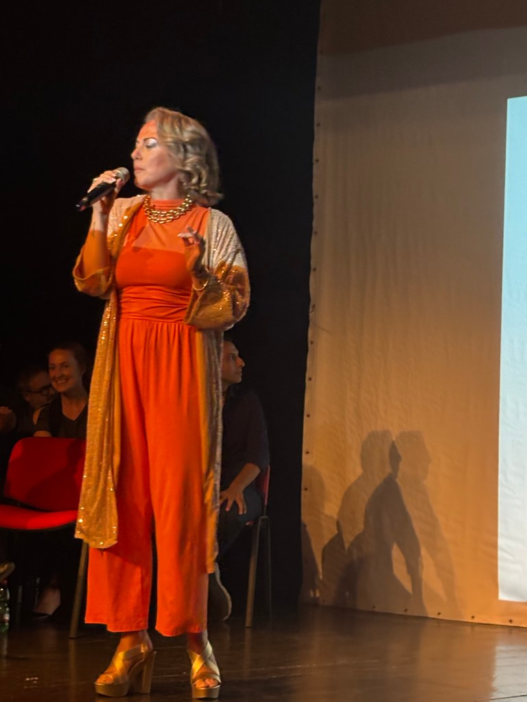 Sul blog vogliamo ricordarla con una delle foto scattate sul palco del Teatro degli Audaci, durante la presentazione della stagione 2021-2023, dove si presentò con l’entusiasmo di una giovane agli albori della carriera, riempiendo lo spazio intorno a se di fascino e gioia di vivere.