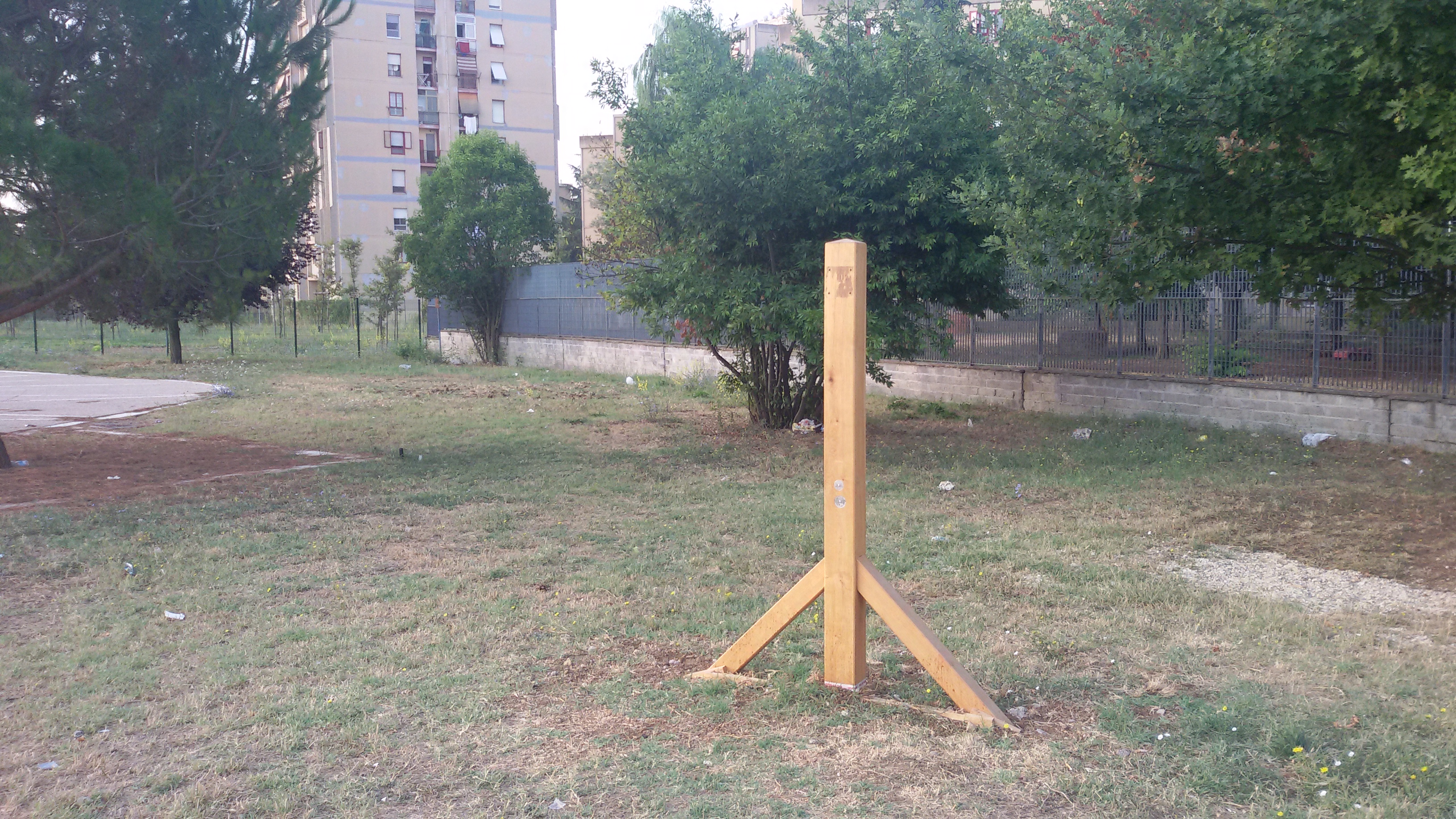 piantando anche due “tronchetti della felicità”. Certo, i cittadini da soli non hanno i mezzi per sostituirsi alle amministrazioni competenti ma intanto il segnale è stato dato, anche se lo stato del piazzale rimane a dir poco pietoso: le panchine restano imbrattate di scarabocchi, l’erba è sempre alta e anche il controverso portale di ingresso “a foglia sospesa” ora è recintato da reti arancioni, a formare l’ennesimo quadro che rappresenta una città in decomposizione non solo morale. Da