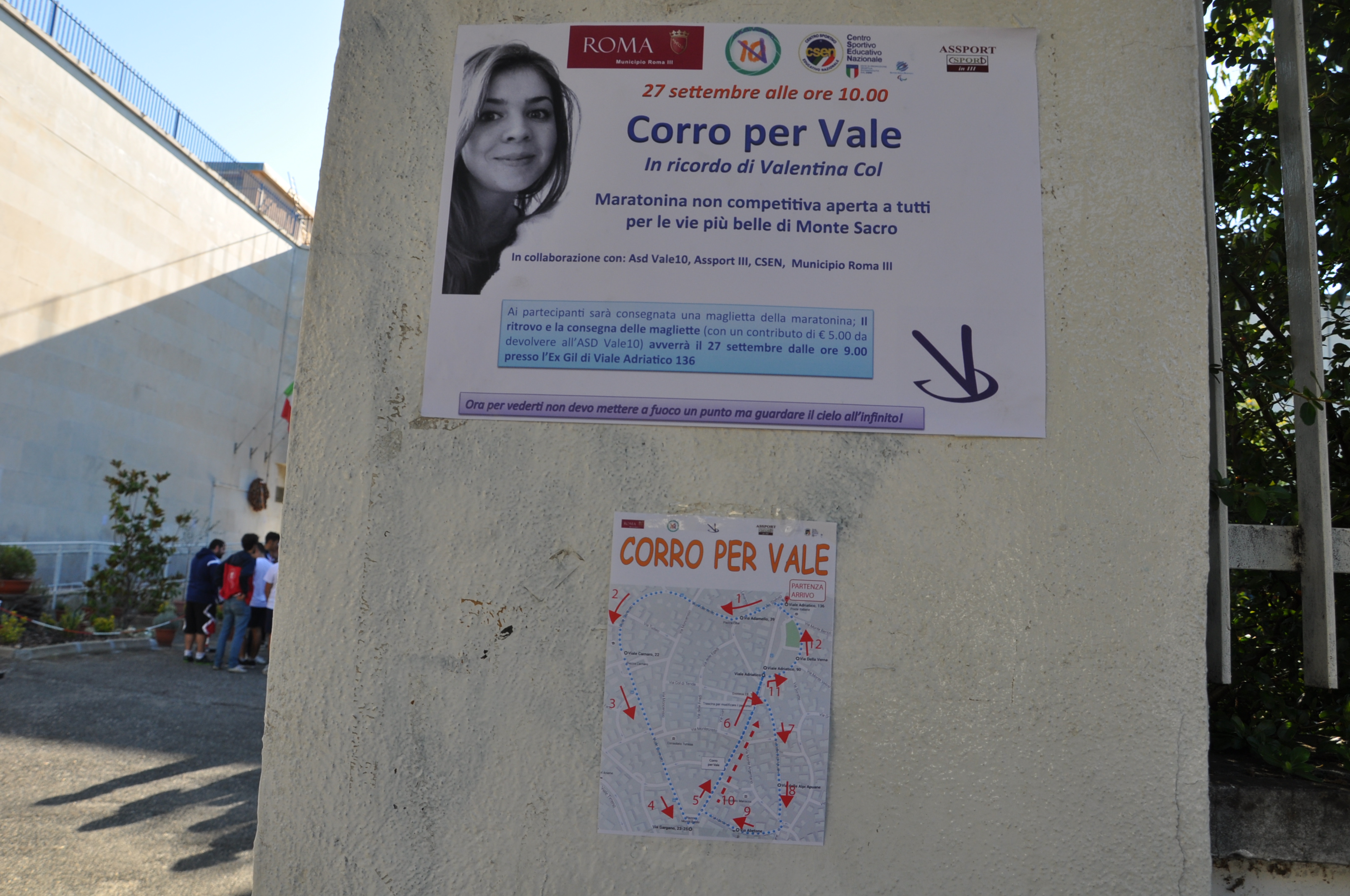 [ROMA] Mi ci è voluto qualche giorno per fare decantare le belle emozioni suscitate dall’aver finalmente partecipato a “Corro per Vale”, la corsa podistica di Monte Sacro dedicata alla giovanissima pallavolista Valentina Col, tenutasi il 9 ottobre e giunta quest’anno alla settima edizione, con il supporto del Terzo Municipio e della Uisp (Unione Italiana Sport per Tutti).