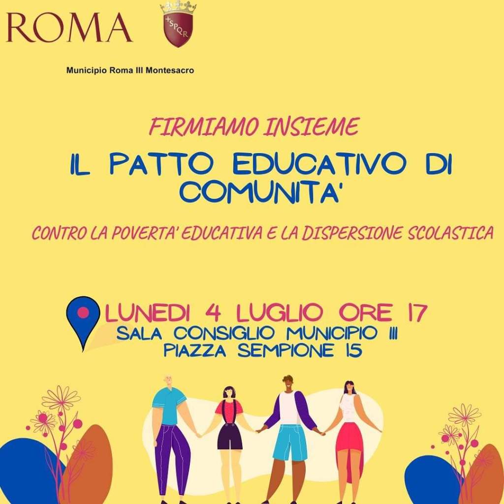 Si tratta di una iniziativa che accomuna realtà educative, scolastiche, della formazione, culturali e sociali attive nel Terzo Municipio assieme alle istituzioni locali, per combattere la povertà educativa e la dispersione scolastica, attraverso un metodo per pianificare le politiche educative in modo condiviso e partecipato. Ha inoltre la finalità di delineare una cornice comune per le tante esperienze che intorno alle Scuole stanno sperimentando soluzioni e percorsi strutturati per dare concretezza ai principi di eguaglianza delle opportunità, affinché le nuove generazioni abbiano davanti a sé tutte le possibilità aperte, al di là delle condizioni socioeconomiche di partenza dei singoli. In questo senso, il Patto di territorio può accogliere e integrare tutti i Patti educativi di Comunità che si sono composti intorno a singoli Istituti Scolastici o progetti di contrasto alla Povertà educativa.