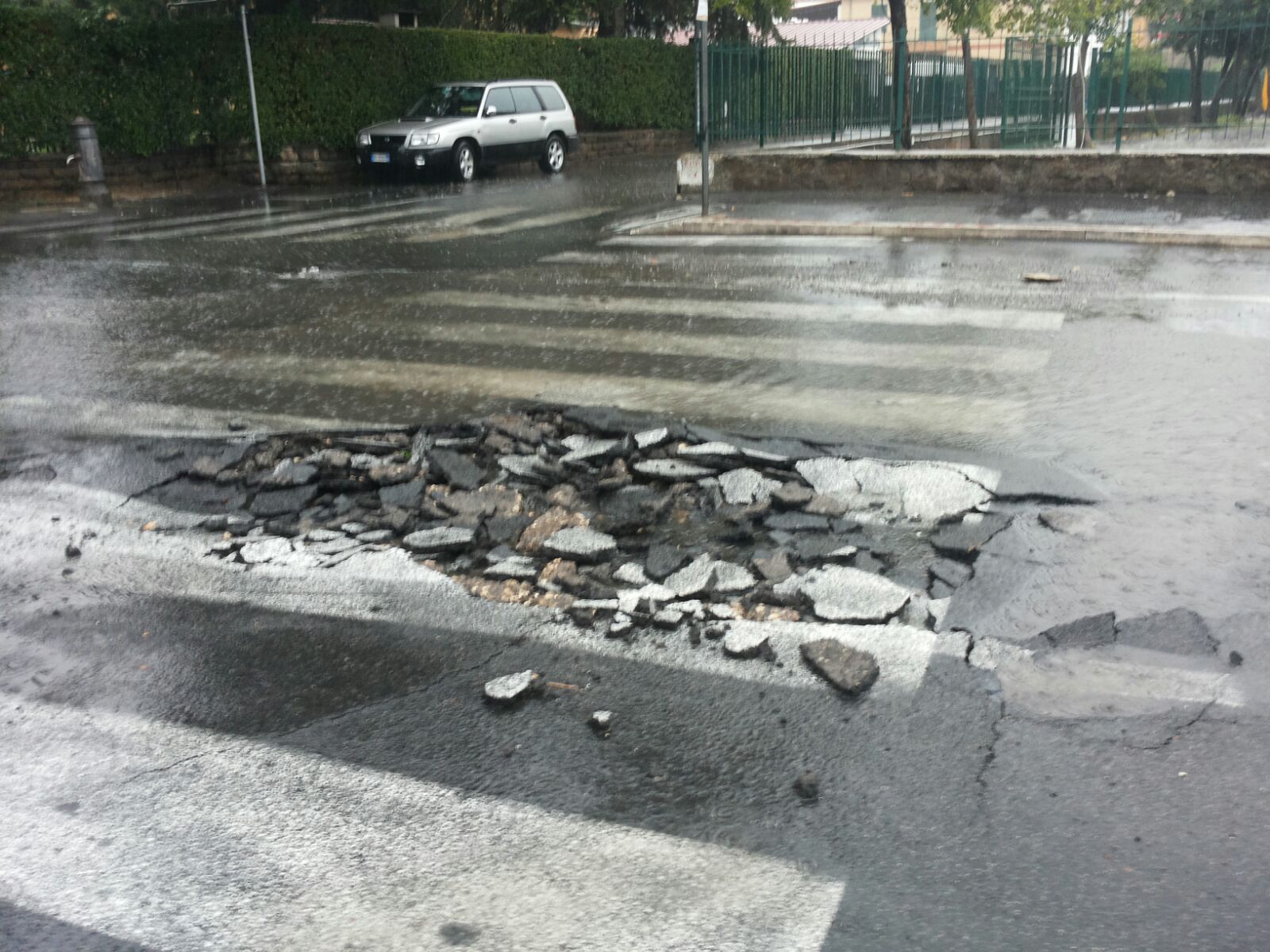 Dopo l’alluvione di due anni e mezzo fa non c’erano stati più problemi. I lavori di manutenzione straordinaria avevano liberato la marana che scorre sotterranea in via Sant’Antonio da Padova, rimuovendo radici e carcasse gonfiate di animali, rimasti incastrati li sotto chissà come. Furono liberate le caditoie da foglie e detriti. Nella tarda serata del 27 luglio, a seguito del nubifragio che ha colpito Roma, il tratto tra via di Sant’Antonio da Padova e l’incrocio con il raccordo Salario-Settebagni, l’entrata Sud per intenderci, è finito di nuovo sott’acqua. A passare sulla via Salaria in direzione Monterotondo si potevano vedere le macchine del parcheggio a fianco del semaforo immerse fino alle portiere, il 135 fermo appena oltre il semaforo, degli agenti sul tetto di una volante con l’acqua giro finestrini. L’altezza delle acque si è innalzata bruscamente nel giro di pochi istanti. La strada interna è stata chiusa davanti alla caserma della polizia stradale. Poco oltre, alcuni bus fermi ai margini del nuovo lago. Alcuni passanti hanno forzato un tombino a mani nude, come raccontato da un ragazzo brasiliano che abita nei paraggi, facendo in modo che l’acqua cominciasse a defluire. Il vortice formatosi aveva un qualcosa di ipnotico, ricordava da vicino quando si toglie il tappo ad una vasca. L’odore che si avvertiva nell’aria non era di fogna ma aveva qualcosa di salmastro, il ché dava la sensazione che da un momento all’altro potessero saltare fuori trote e carpe dalle aiuole. Piano piano l’acqua ha cominciato a defluire lasciando sull’asfalto breccia e detriti scesi a valle dalla parte collinare. Alle 22 gli impiegati del Triscount erano all’opera armati di scope e secchi, nel tentativo di salvare l’apertura dell’indomani. In via dello scalo di settebagni l’asfalto è saltato in più punti. Decine le macchine danneggiate. Tantissimi i residenti scesi ad osservare l’ennesimo lago artificiale formatosi nel quartiere, sempre nello stesso punto, che hanno commentato rassegnati il fatto che passata l’emergenza e i lavori straordinari che comporta, non vengono stanziati fondi per la manutenzione periodica ordinaria delle caditoie, ché basterebbe quello per non andare sottacqua con un temporale estivo.