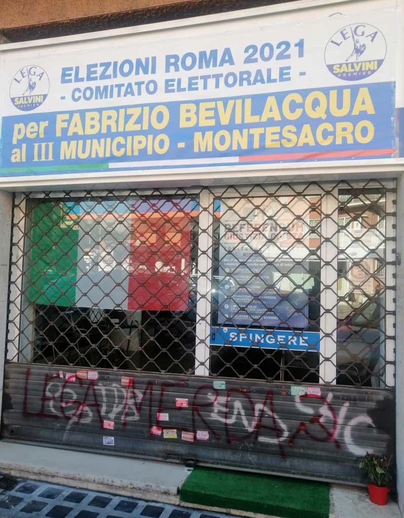 [ROMA] La notte tra il 28 e il 29 agosto è stata vandalizzata la sede del comitato elettorale della Lega per il Terzo Municipio in via Valle Scrivia, nel quartiere Conca d’Oro-Prati Fiscali: ignoti hanno danneggiato la serranda imbrattandola con scritte offensive.