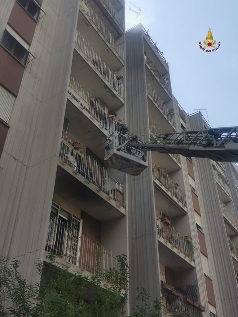Il fumo che si è sviluppato ha invaso completamente le scale condominiali e sono intervenuti i Vigili del Fuoco mettendo in salvo con l’autoscala alcuni condómini che non riuscivano a uscire di casa per la nube. Diciotto persone sono rimaste lievemente intossicate e portate in ospedale. Temporaneamente il palazzo è inagibile per il fumo. Alessandro Pino (Foto Comando Provinciale Vigili del Fuoco Roma)